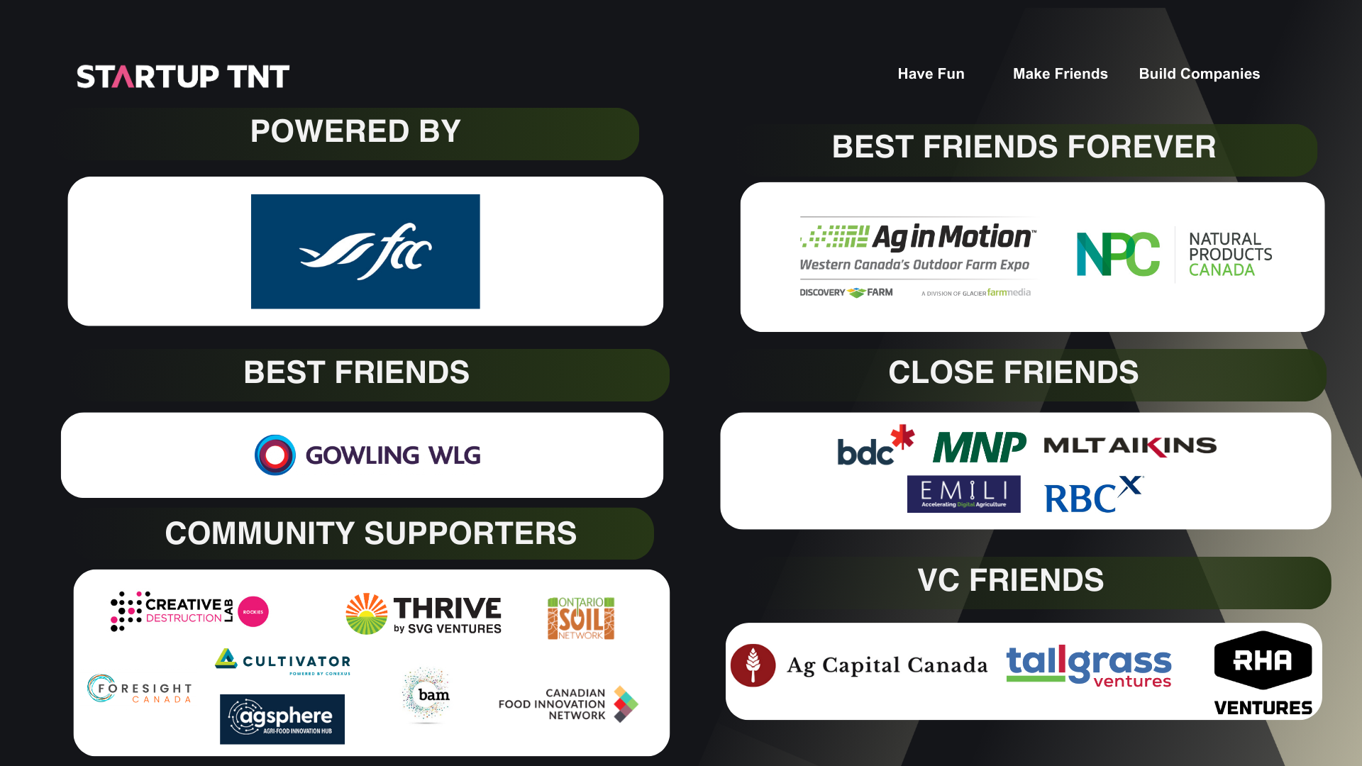 At Startup TNT, we understand that accessing capital is the biggest hurdle for startups. That's why we organize 30+ Angel Syndicates in Western Canada per year, to invest in both new and existing startups. We strongly believe that local startups stand to benefit from raising capital from local investors. We also believe that building companies and investing in startups is more enjoyable when done as a team, with friends. And we can confidently say that we have the most fun doing it.